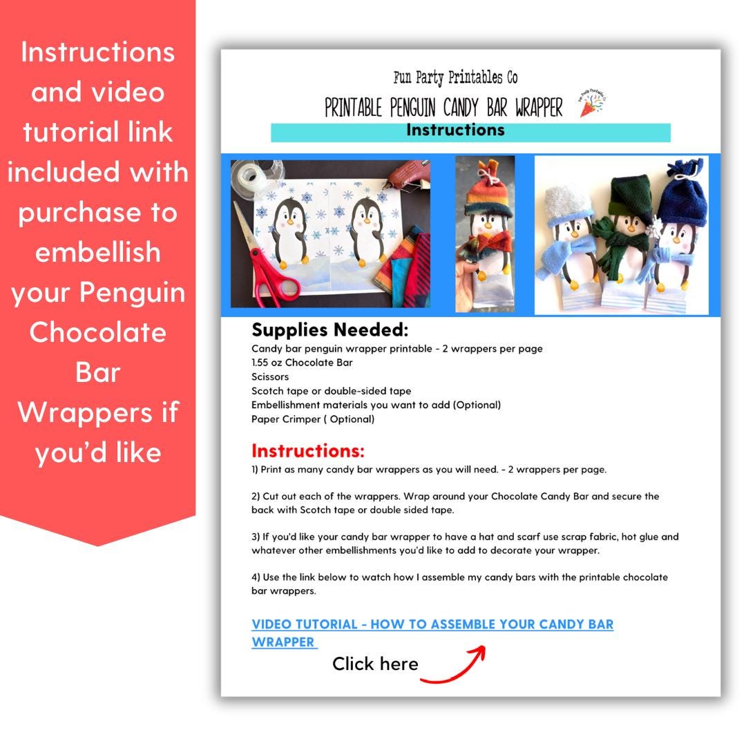 Exclusive link to a video tutorial showing you exactly how to assemble your Penguin Chocolate Bar Wrappers
